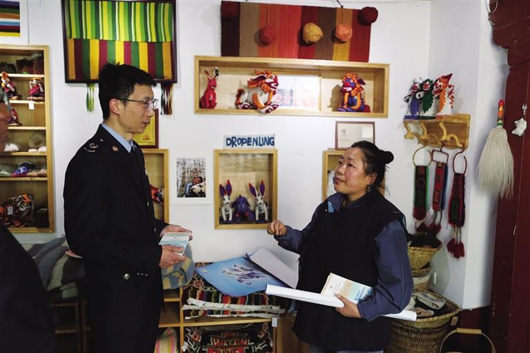 包保稅務(wù)網(wǎng)格員在店內(nèi)指導(dǎo)商家申請發(fā)票和開具發(fā)票事項操作。資料圖