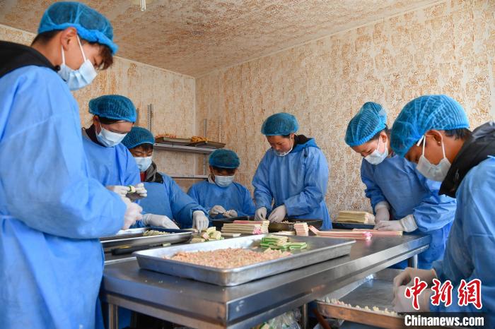 2月10日,西藏拉薩市林廓北路一家卡塞店里,工人在制作卡塞?!翱ㄈ笔且环N油炸面食,是藏歷新年必不可少的食物。隨著藏歷新年的日益臨近,古城拉薩各個(gè)加工銷(xiāo)售“卡塞”的店鋪飄出陣陣香味。中新社記者 貢嘎來(lái)松 攝