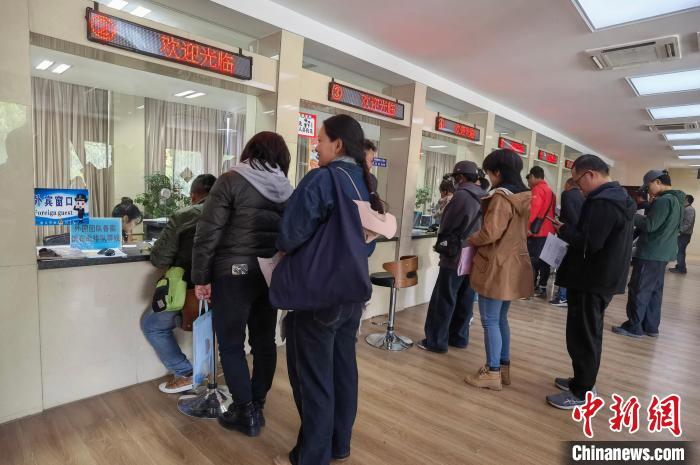 圖為西藏出入境邊防檢查總站辦證大廳,民眾正排隊(duì)辦理證件。徐錫萬(wàn) 攝